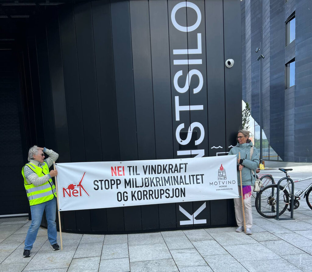 Vi har vært på en markering mot vindkraft utenfor Silokaia i Krs i dag. Den ene ordføreren etter den andre gikk inn i møte m Statkraft og andre utbyggere, men ingen repr. fra den andre siden er invitert til å legge frem sin side av saken. Jeg forventer at vi mot vindkraft får samme eksklusive møtetid med politikerne!!